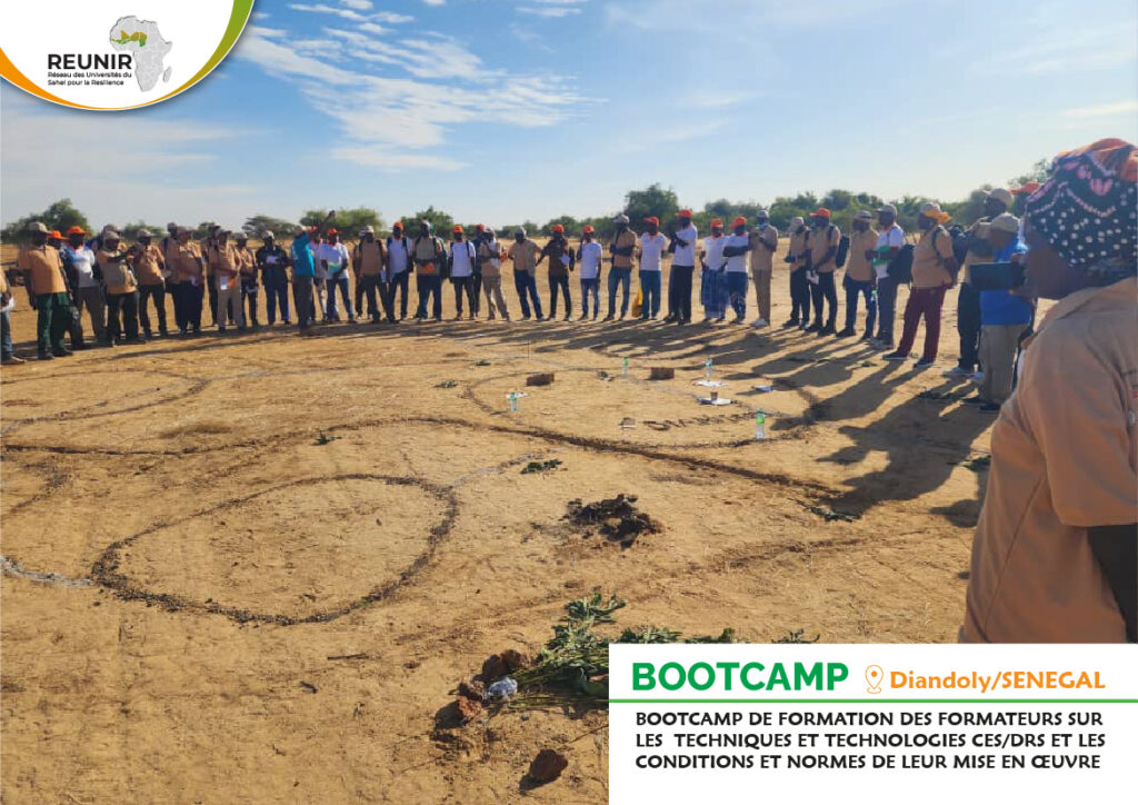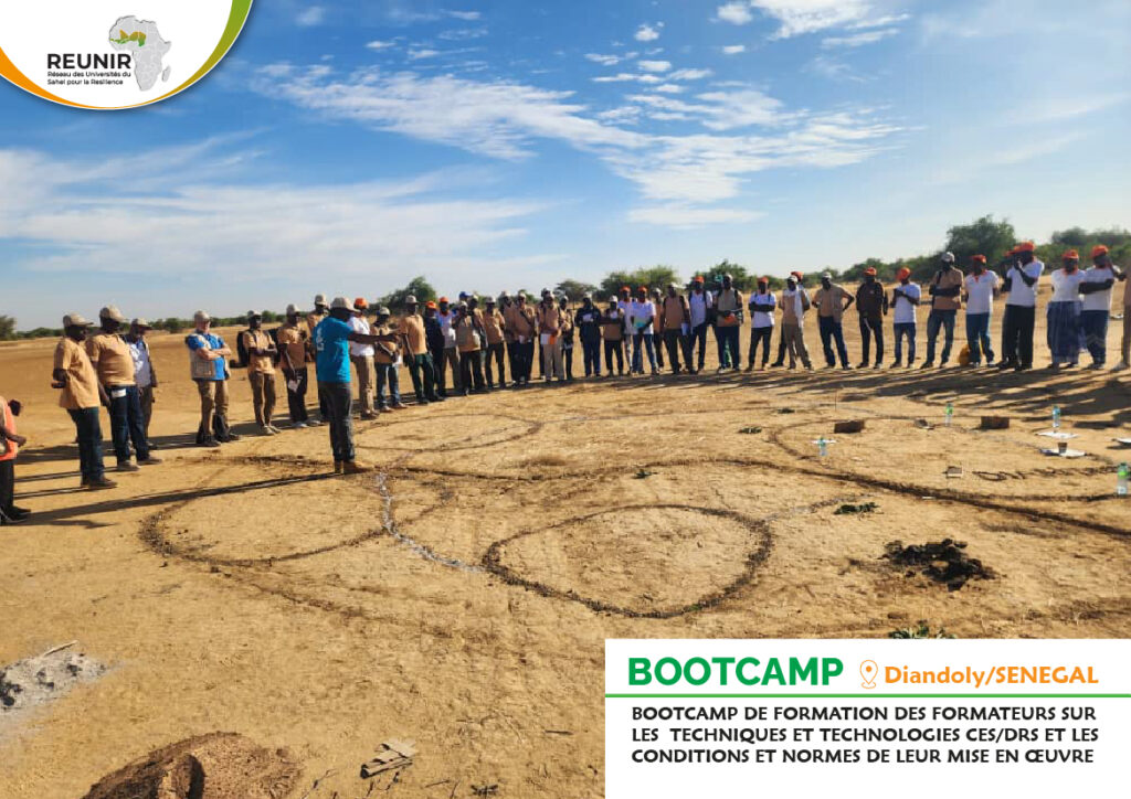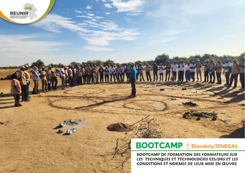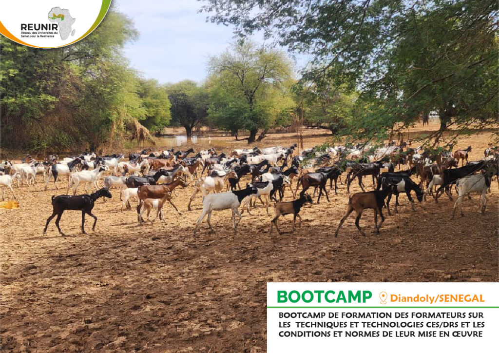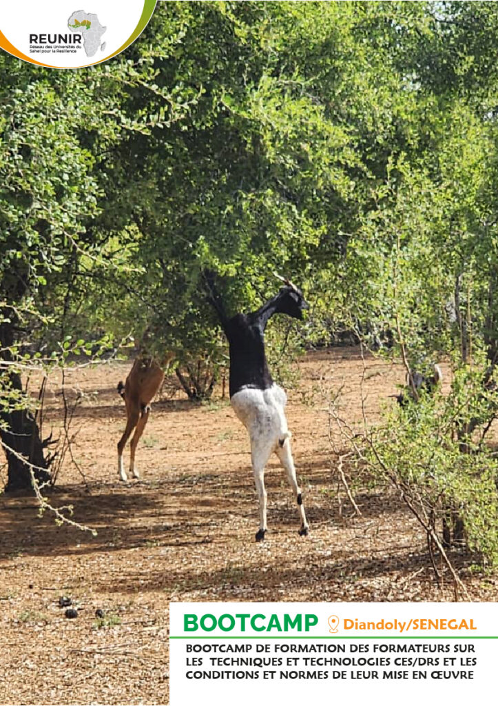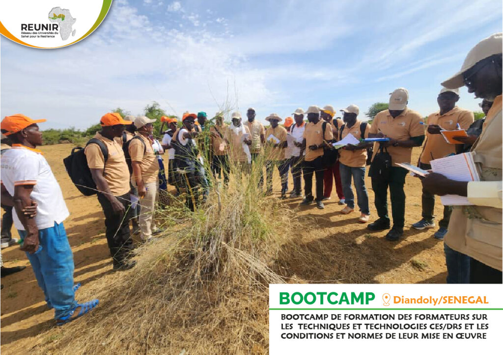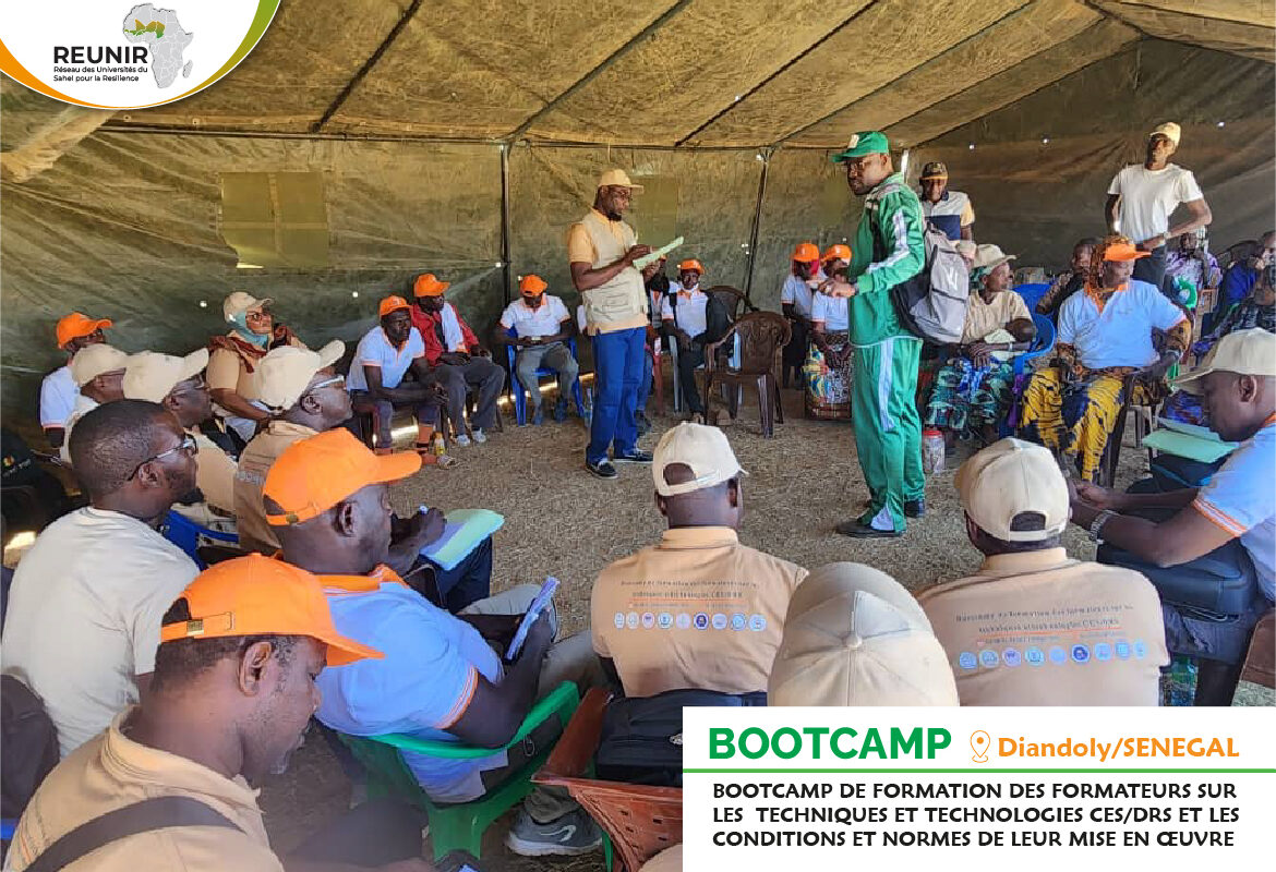 1. Renforcer les capacités des participants venant des universités membres de REUNIR (pool d’experts en réalisation de boot camp) en techniques de CES/DRS, en élevage, restauration des paysages, et actions de création d’actifs productifs au niveau des ménages ; qi serviront de relai pour l’implémentation des techniques apprises dans les différents pays ;